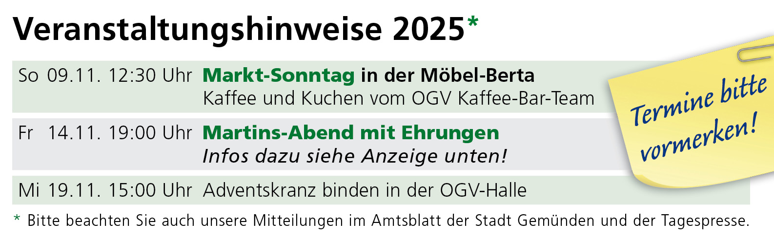 Der OGV mit seinen 285 Mitgliedern bezweckt im Rahmen des Obst- und Gartenbaues und der Imkerei die Förderung der Landes- und Bienenpflege und des Umweltschutzes zur Erhaltung einer schönen Kulturlandschaft und der menschlichen Gesundheit. Der Verein fördert insbesonders die Ortsverschönerung und dient damit der Verschönerung der Heimat, der Heimatpflege und somit der gesamten Landeskultur.
